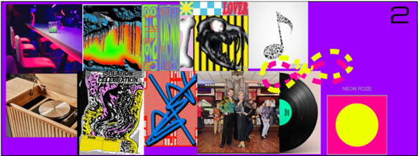 is de moodboard veel veranderd naar neon-kleuren, moderne foto’s en plaatjes.
