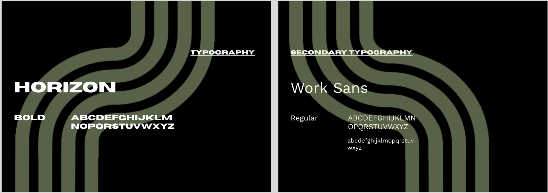 • Secondary Typography: Work Sans, een modern en eenvoudig sans-serif lettertype, gekozen om langere teksten helder en professioneel weer te geven. Dit font sluit visueel goed aan op het primaire font.