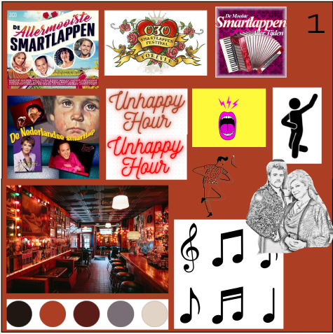 smartlappen muziek zingen voor een wat ouder publiek in bruine kroegen en daar heb ik mijn eerste moodboard op