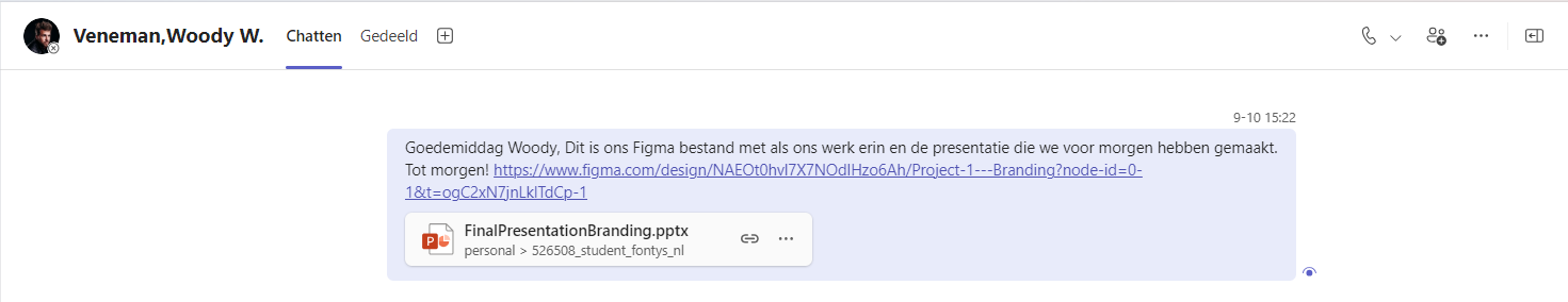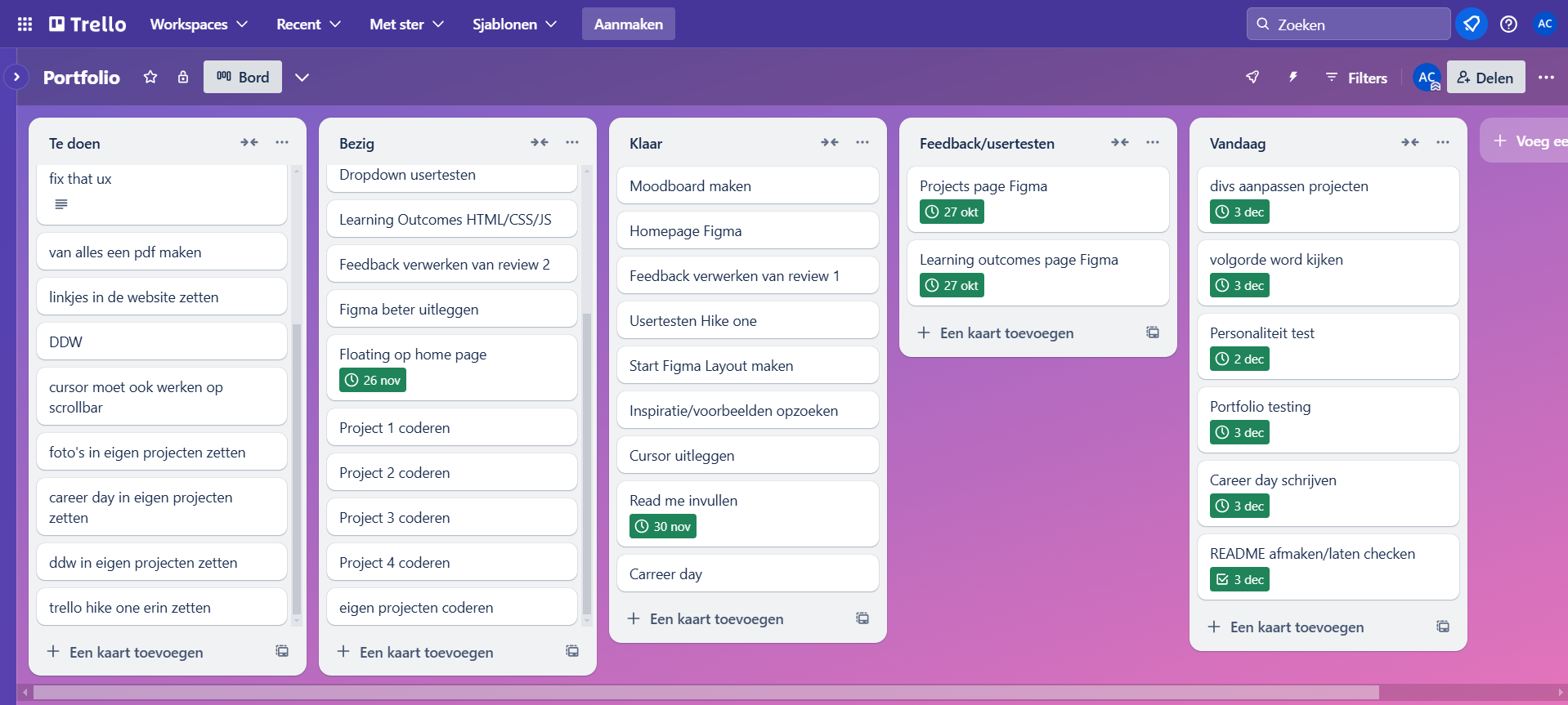 Over het algemeen gingen de samenwerkingen goed en wist ik altijd wat ik moest doen. Een belangrijk aandachtspunt voor mij is dat ik meer initiatief moet nemen en niet altijd moet wachten op anderen voordat ik begin aan een opdracht. Het is beter voor mij om aan de planning te houden die in canvas staat, zodat ik geen vertraging veroorzaak voor mezelf en alle opdrachten kan uitvoeren die nodig zijn voor een project.