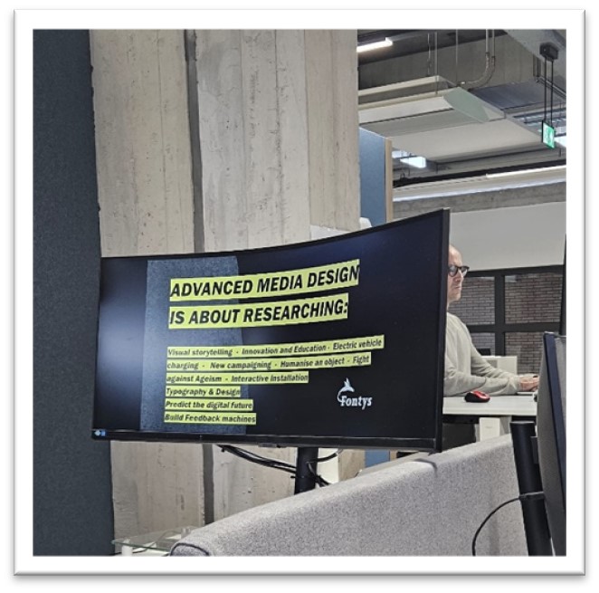 Een docent heeft uitgelegd hoe het semester zal verlopen, wat er van je verwacht zal worden en hij heeft voorbeelden laten zien van studenten in dat semester. Je kunt in dit semester verschillende kanten op gaan, zoals Visual storytelling, Humanise an object en Build Feedback machines. Je kunt veel dingen gaan maken en wat ook leuk is, is dat je een week naar het buitenland gaat en je hebt in die week een project met studenten van daar.