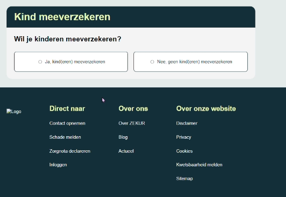 stukje kind meeverzekeren zit ook JavaScript. Je kunt klikken op ‘ja’ of ‘nee’. Wanneer je op ‘ja’ klikt, klapt het uit
